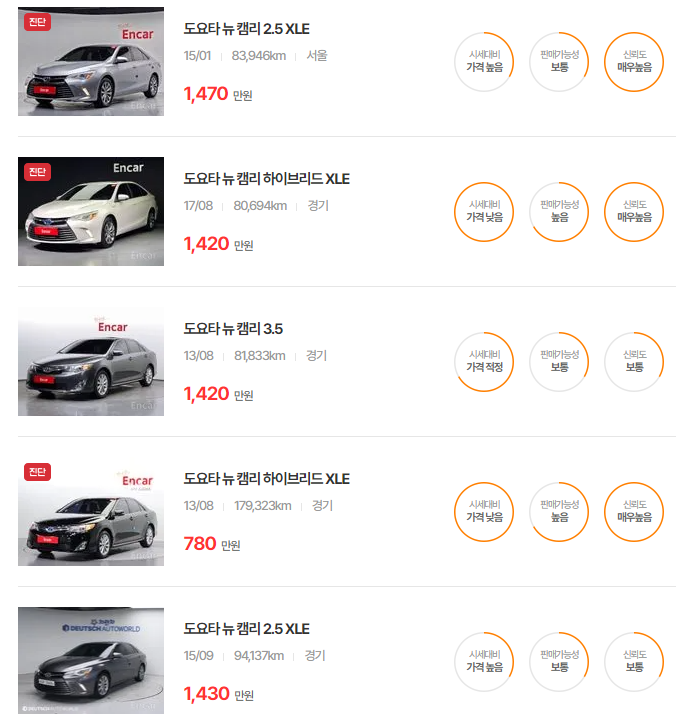 - 엔카: 다양한 차종과 상세한 매물 정보를 제공하는 한국 최대의 자동차 거래 플랫폼입니다. 엔카 바로가기