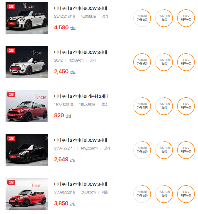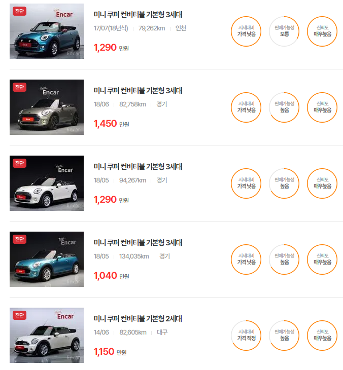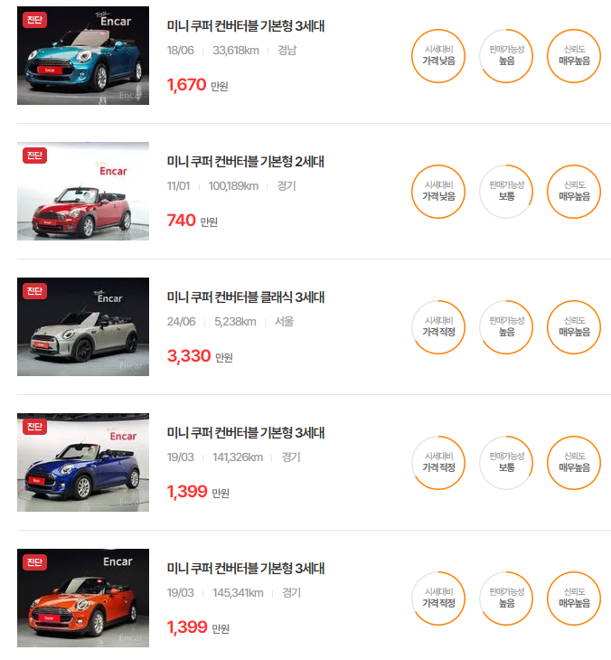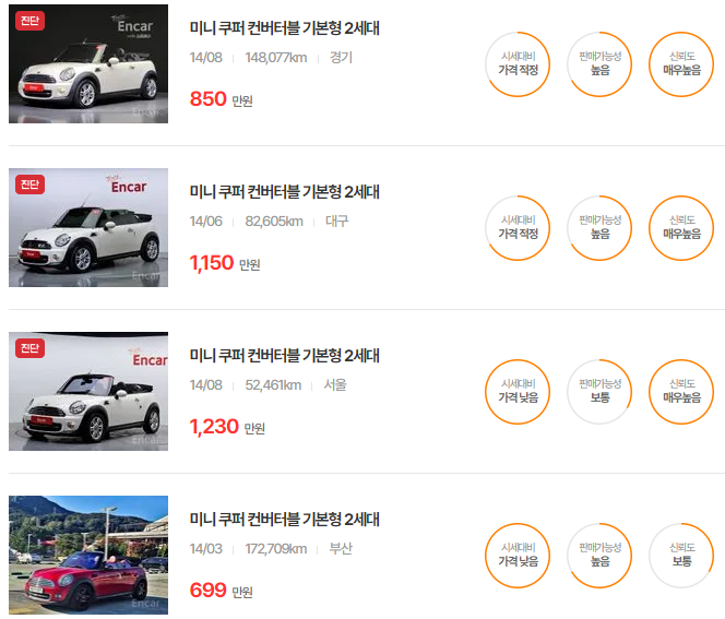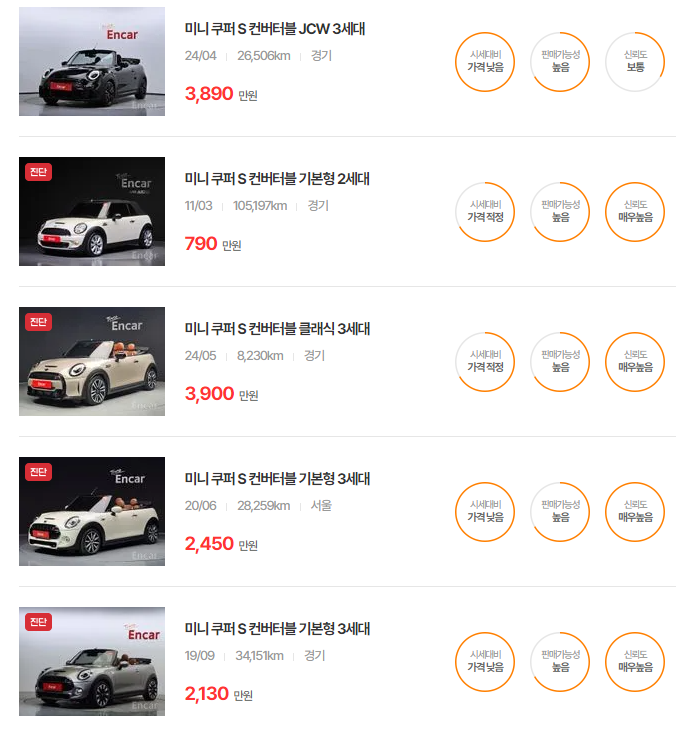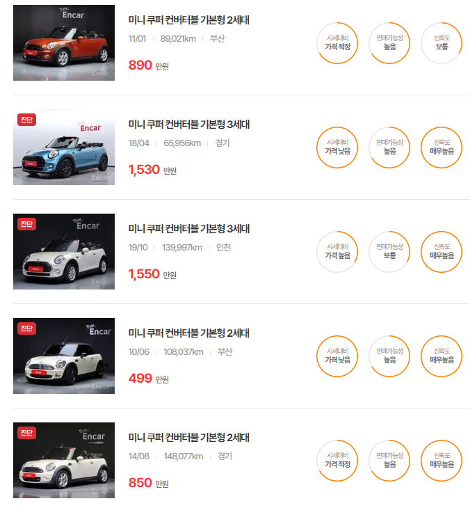 미니 컨버터블 중고차 가격