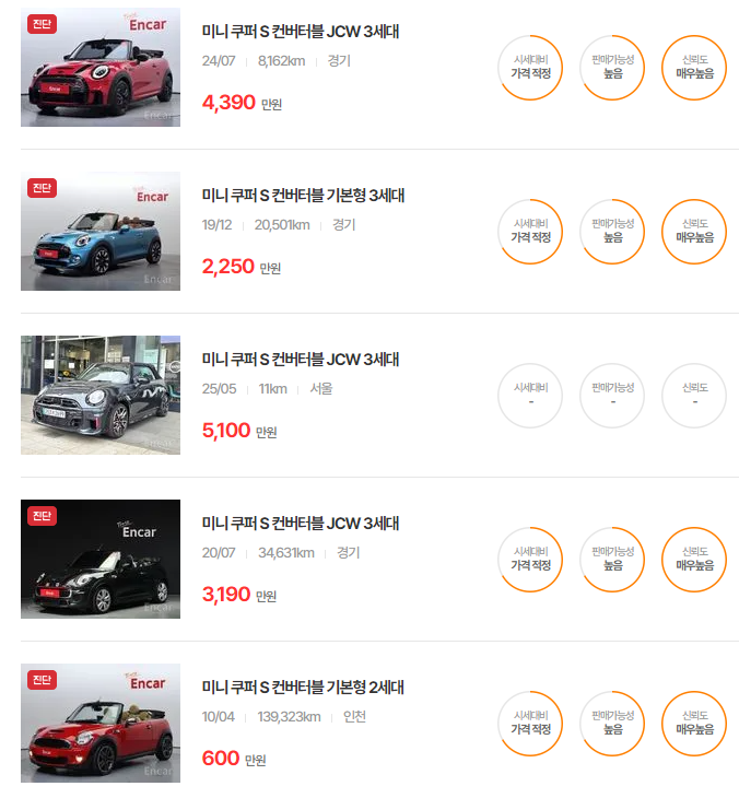 미니 컨버터블, 중고차 가격, 연식별 시세, 차량 유지비 등 다양한 요소를 종합해봤습니다. 이 글이 미니 컨버터블 중고차를 고려하시는 데 도움이 되었길 바랍니다.
