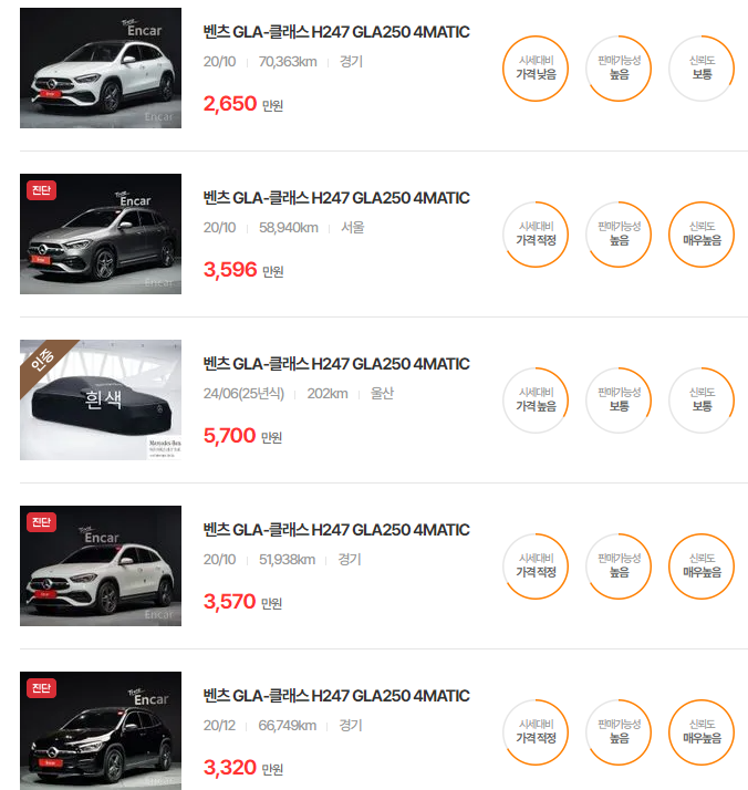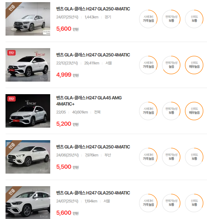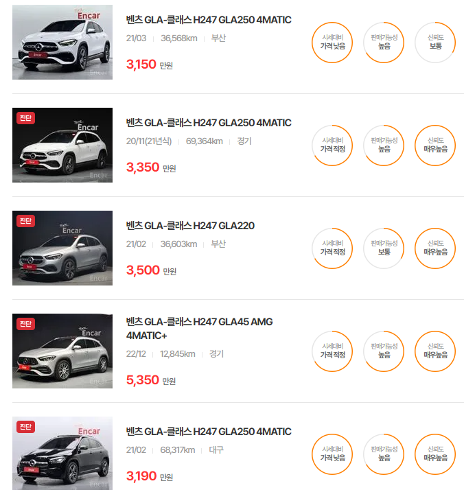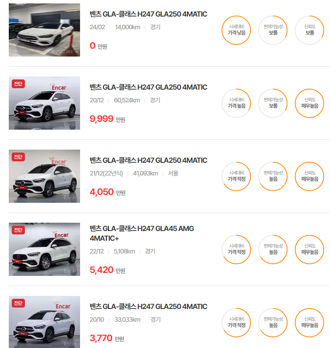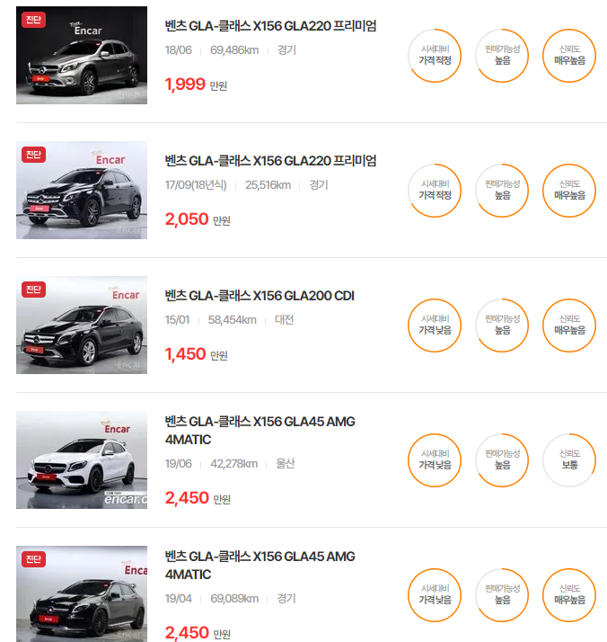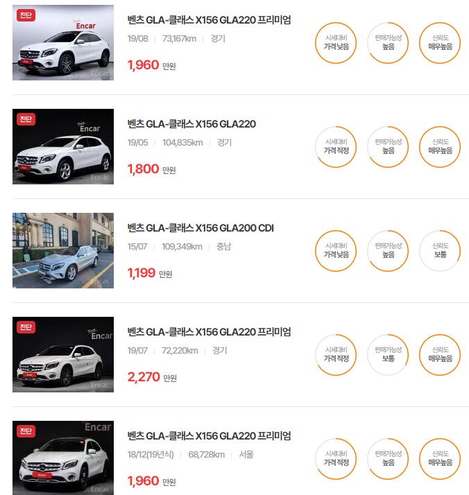 벤츠 GLA-클래스 중고차 가격