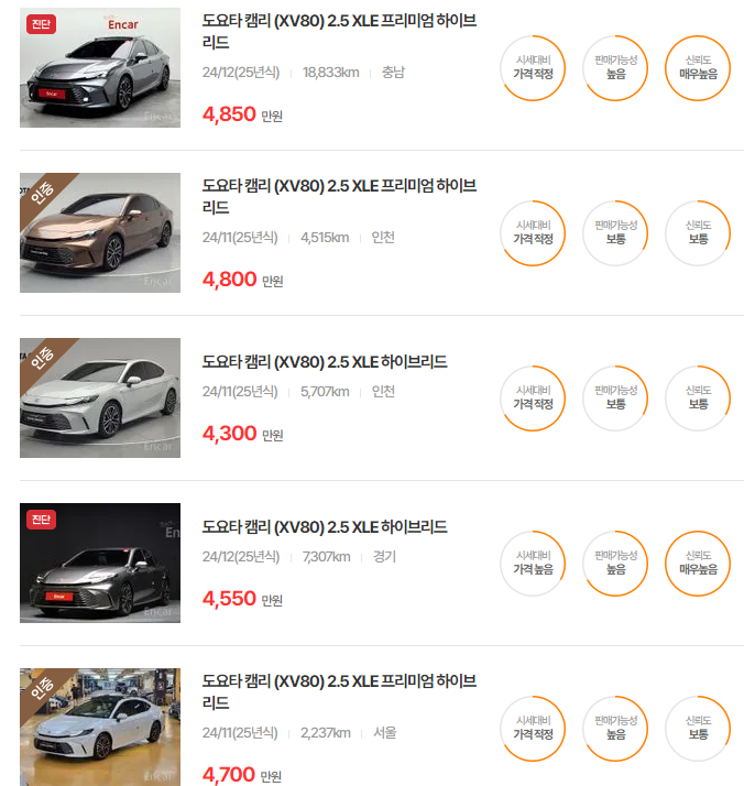 | 토요타 캠리 하이브리드 풀체인지 중고차 가격 시세표 (1) | 2025.06.14 |