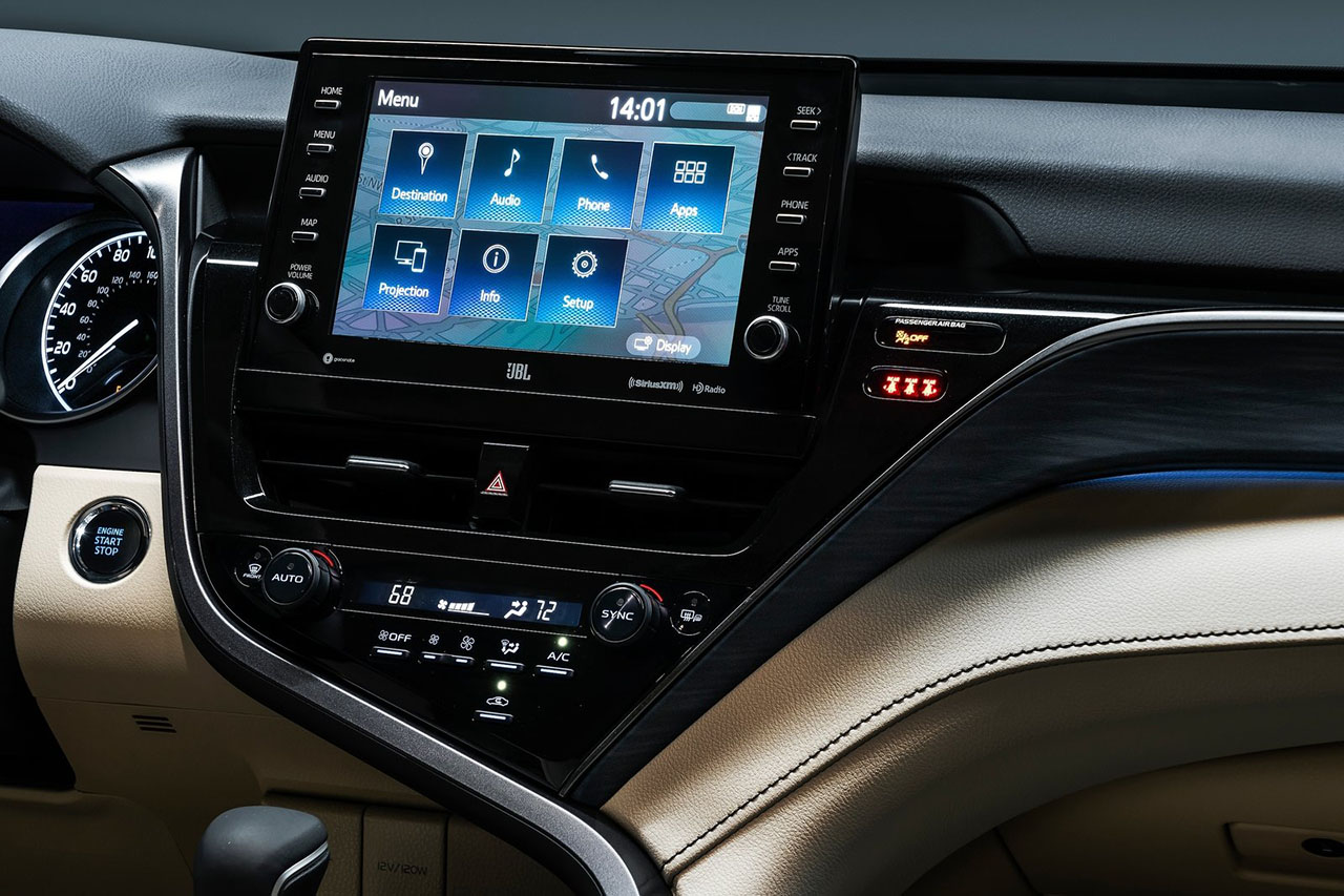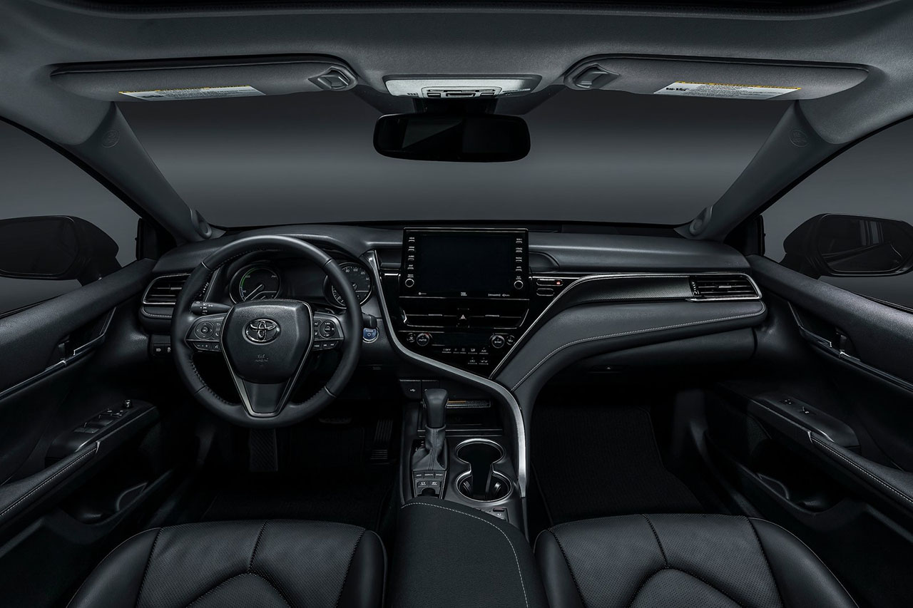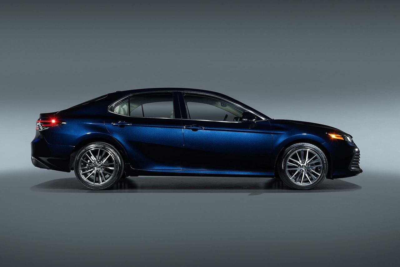 토요타 뉴 캠리는 공기역학을 고려한 세련된 디자인이 돋보이며, 날렵한 전면부와 독창적인 리어뷰가 특징입니다.