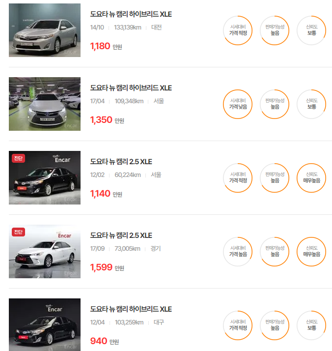 토요타 뉴 캠리의 중고차 가격, 연식별 시세, 그리고 차량 유지비에 대한 정보를 제공했습니다. 이 글이 토요타 뉴 캠리 중고차를 고려하시는 데 도움이 되었길 바랍니다.