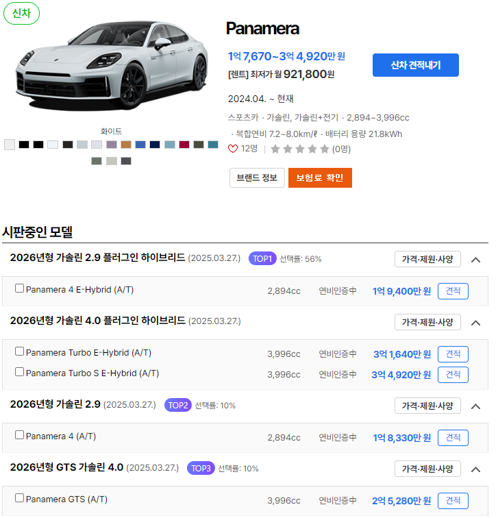 2026 포르쉐 파나메라는 다양한 트림과 옵션을 제공하며, 가격은 아래와 같습니다: