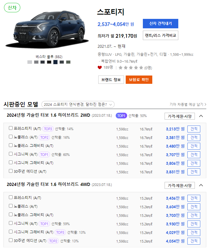 2024 스포티지 하이브리드 가격표