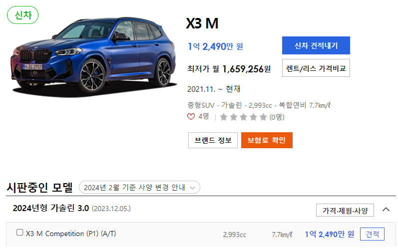 2025 BMW X3 M의 유지비