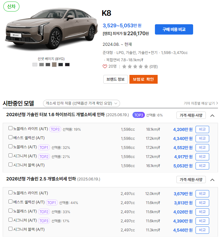 2025 K8은 가격, 연비, 제원 등 모든 면에서 매력적인 옵션을 제공합니다. 유지비까지 고려해야 합리적인 선택이 가능하며, 해당 차량 구매에 고민 중이시라면 위 정보를 참고해보시길 바랍니다.
